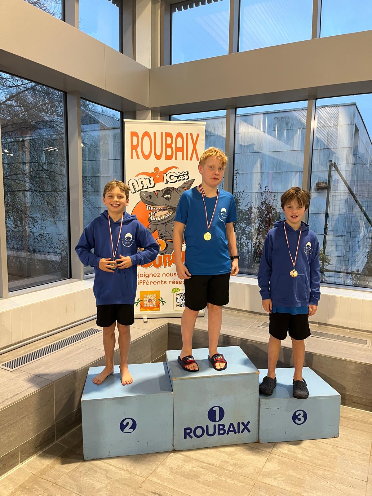 Aujourd’hui nos nageurs ont participé à la 2ème journée qualificative organisée par le club de ROUBAIX. Pour certains, c’était une première sur le 50m dos et le 50m crawl avec de beaux résultats à la clé. Félicitations à tous les nageurs du club.